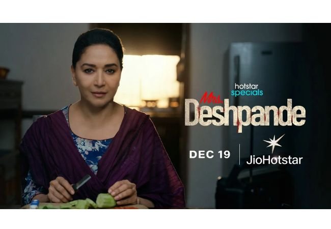डिस्नी प्लस हॉटस्टावर मिसेस देशपांडे सीरीजच्या टीजरमध्ये मिसेस देशपांडे शांतपणे भाजी चिरताना आणि ‘भोली सी सूरत’ हे गाणे गुणगुणताना दाखवण्यात आली आहे. त्याचवेळी बाजूलाच सुरू असणाऱ्या रेडिओवर एका सीरियल किलरबद्दल बातमी सांगितली जाते. ८ हत्या करणाऱ्या त्या सीरियल किलरचा अद्याप शोध लागलेला नसल्याचे जाहीर केले जाते. ही बातमी ऐकल्यानंतर मिसेस देशपांडेच्या चेहऱ्यावर एक धडकी भरवणारे हास्य पाहायला मिळते. एकीकडे एक मध्यमवर्गीय गृहिणी आणि दुसरीकडे सीरियल किलर अशा दुहेरी भूमिकेत माधुरी दिसणार आहे... (Entertainment News)