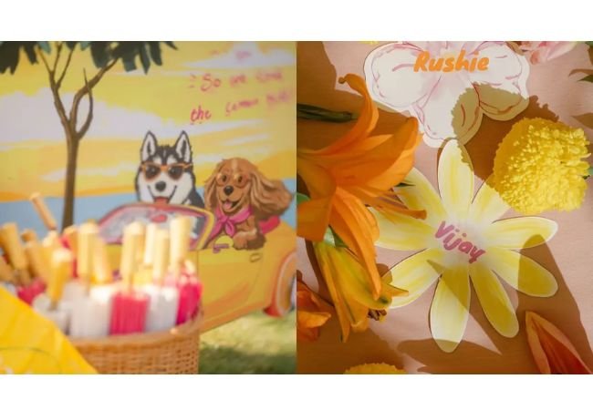 विजय देवरकोंडाने इन्स्टाग्रामवर स्टोरीमध्ये पोस्ट केलेल्या फोटोत फुलांच्या चादरीने सजलेला स्टेज, मध्यभागी टेबल, बाजूला छान पिवळ्या फुलांचा सडा आणि दोघांच्या नावाचे रुशी आणि विजय (Rushie & Vijay) असे बोर्ड लावलेले दिसत आहेत. एकूणच अगदी जवळच्या नातेवाईकांच्या उपस्थित दोघे नव्या आयुष्याची सुरुवात करणार आहेत. (VIROSH haldi photos)