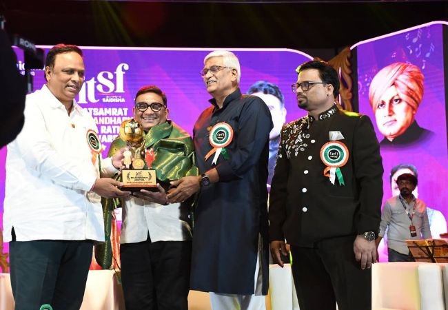 सिने सृष्टीतील योगदानासाठी मकरंद देशपांडे, मुरली शर्मा, सई ताम्हणकर, भाऊ कदम, सिद्धार्थ जाधव यांचा नटसम्राट बालगंधर्व पुरस्काराने केंद्रीय सांस्कृतिक कार्यमंत्री गजेंद्र सिंह शेखावतआणि महाराष्ट्राचे सांस्कृतिक कार्यमंत्री आशिष शेलार यांच्या हस्ते सन्मान करण्यात आला…तसेच, गायन विभागात या पुरस्काराचे मानकरी ठरले कुमार सानू, पियुष पनवर.. कुमार सानू यांनी पुरस्कार स्वीकारला…